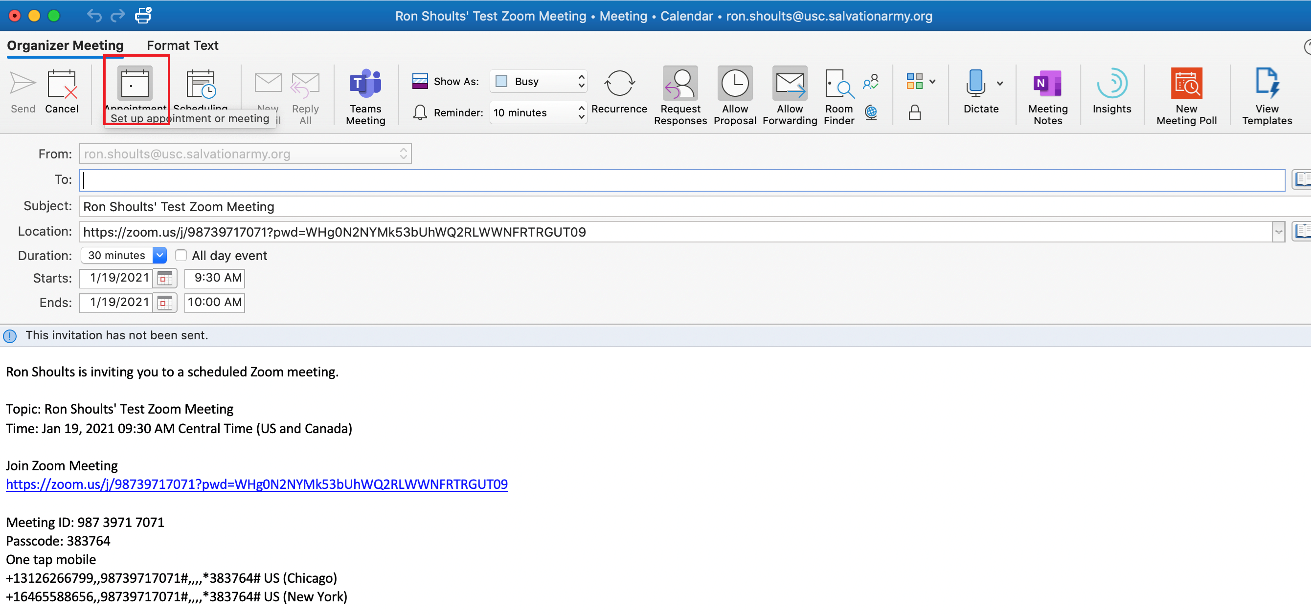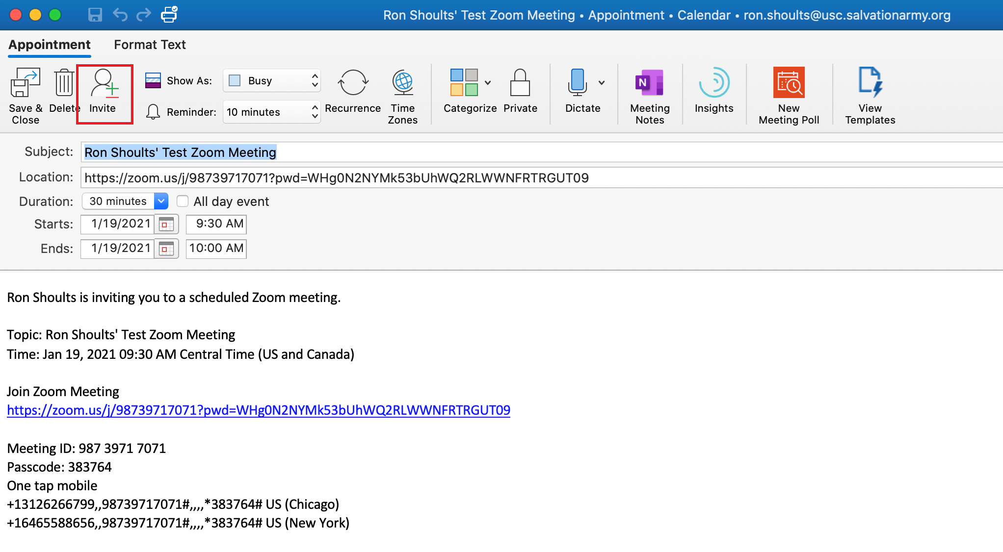 Outlook - How to send a Zoom invites from local Outlook client on a Mac