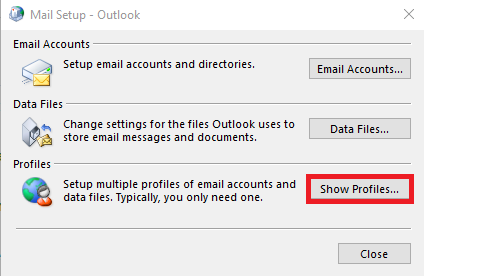 2) Go to Control Panel and select Mail (Outlook 2016)