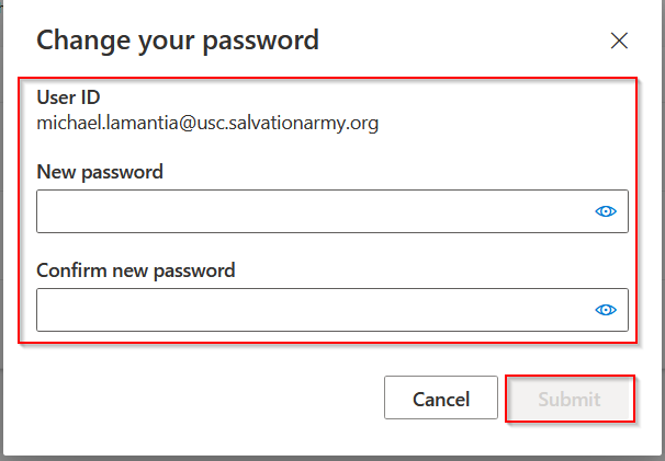 7) Press the Submit button and the new password should now be created. If you do this while not in the building it will not change your password on your computer until you come into the office and are connected to our network |